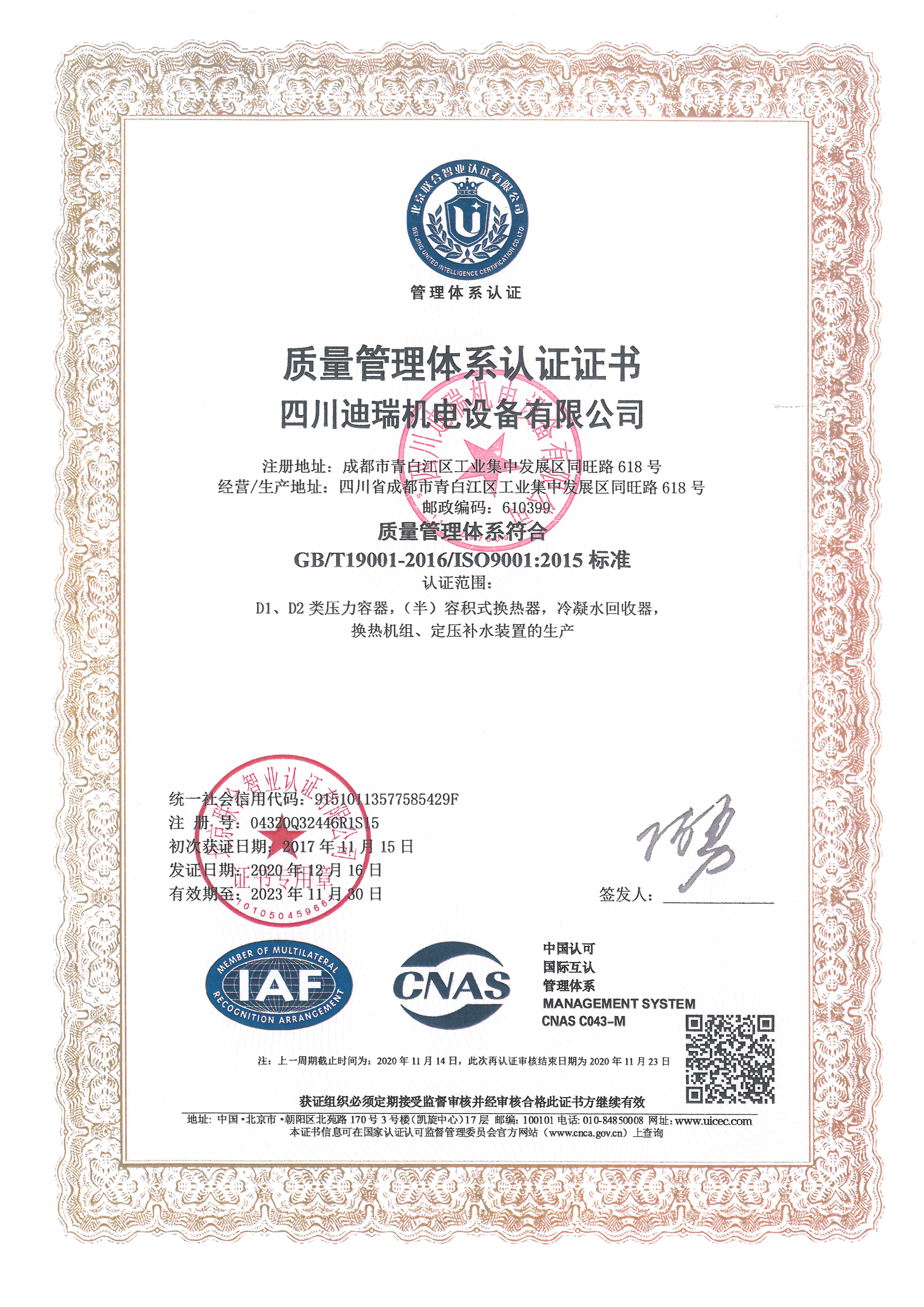 四川迪瑞機電設備有限公司是國家高新技術企業,專注于研發、制造、銷售(半)容積式換熱器、換熱機組和余熱回收設備。